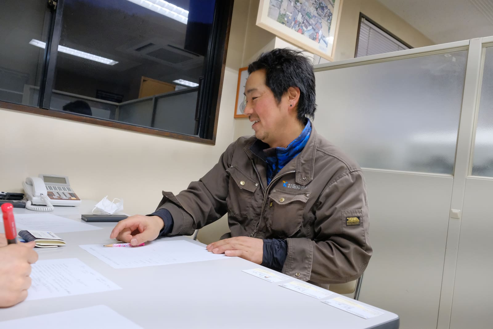 かなり前のことなんですけど、勤めていた運送会社を辞めて、別の仕事を探していました。当社に来たのは、ちょうどその頃に、友人に「建設のバイトをしないか?」と誘われたのがきっかけです。始めは短期間のつもりで、働き始めました。
