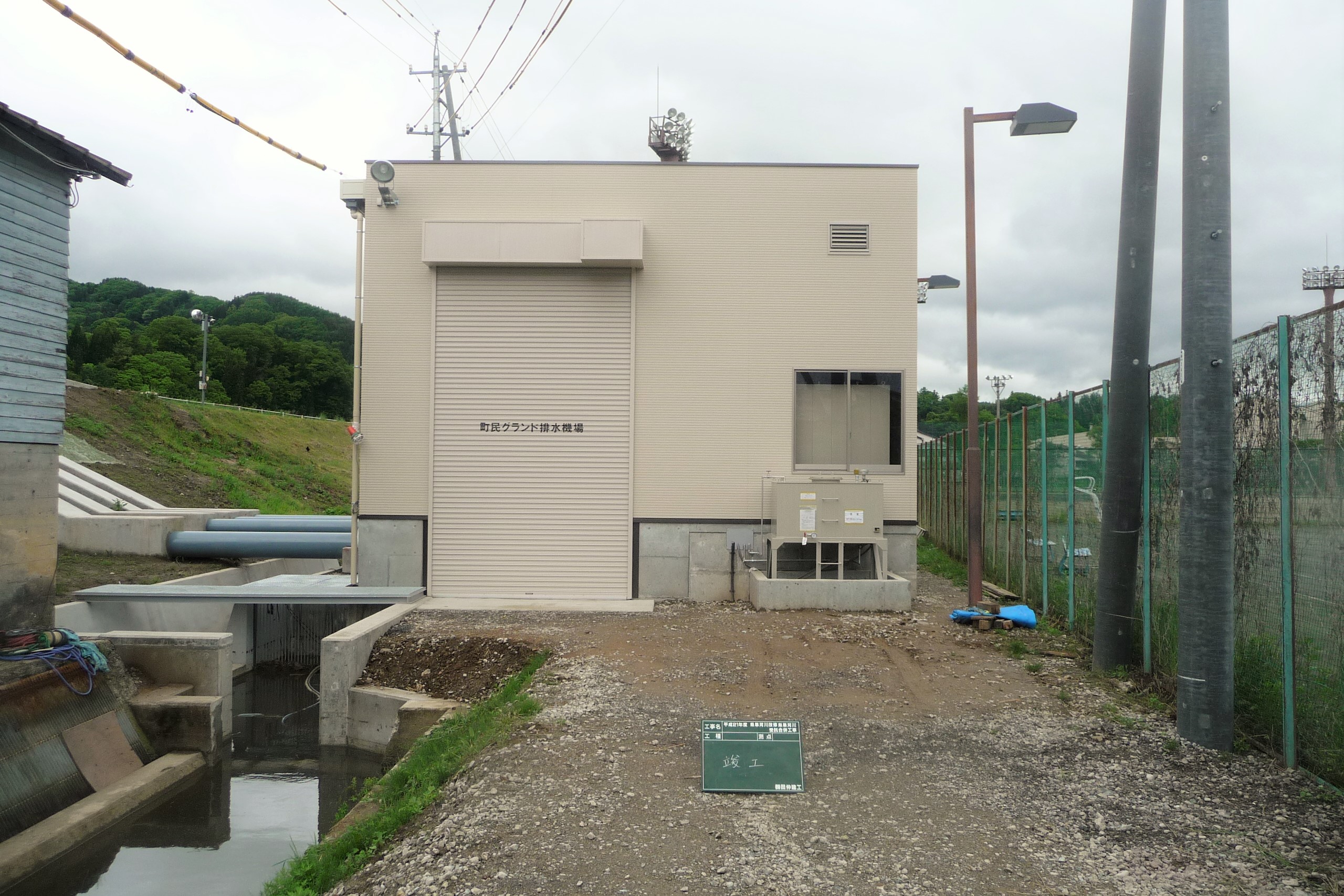 長野市信州新町に、排水機場と周辺の水路の建築を行いました。