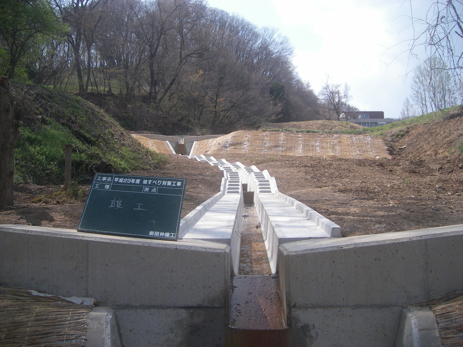 茶臼山地すべり対策工の一環として、砂防堰堤を二つ建設しました。