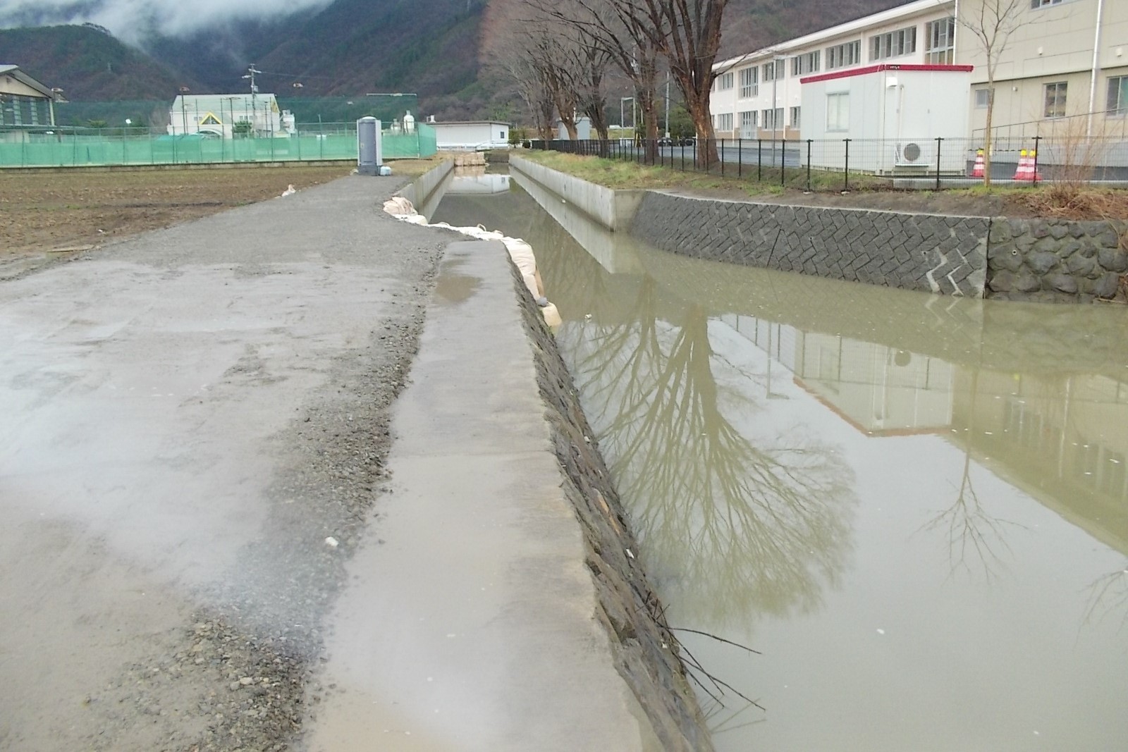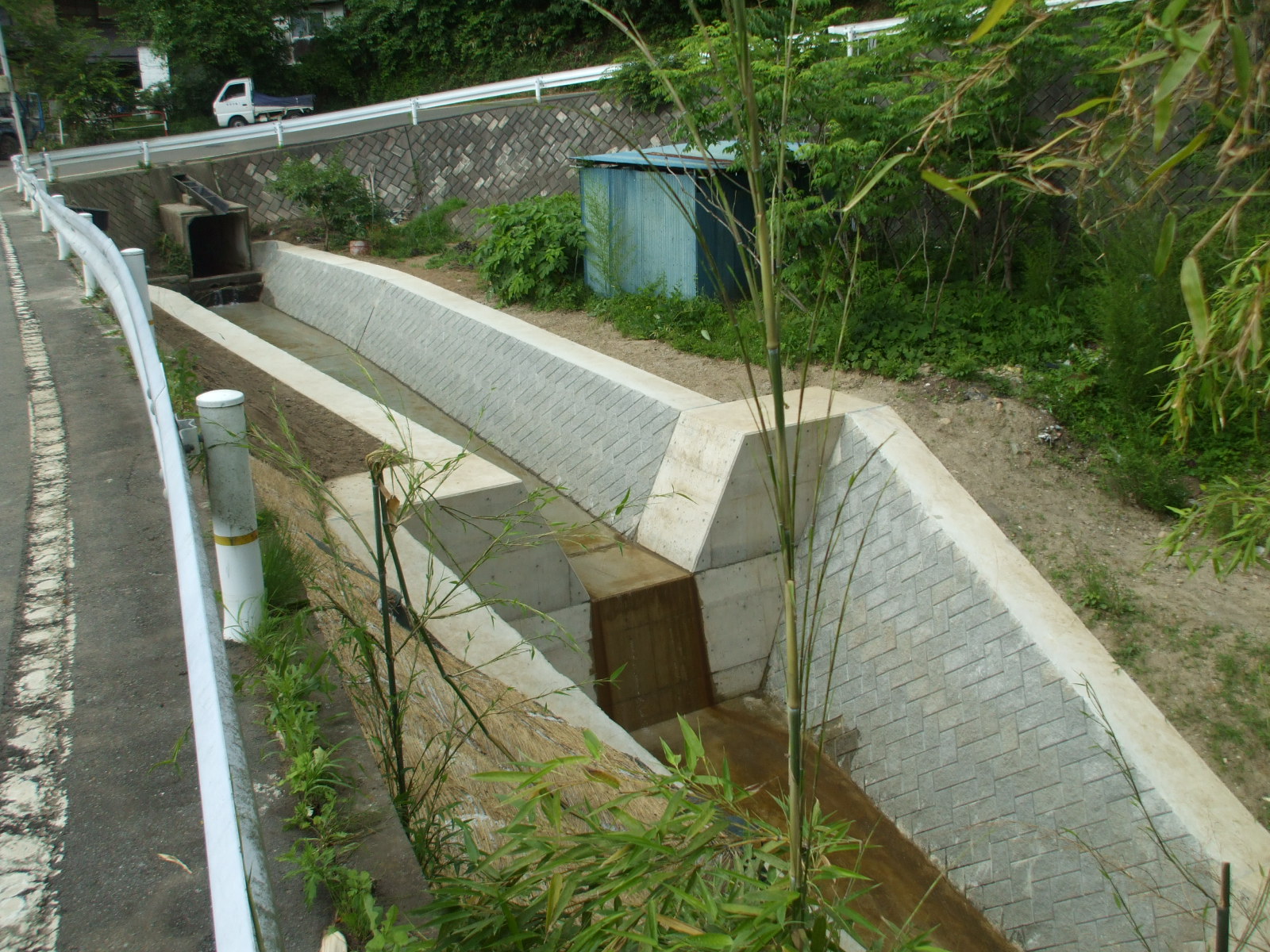 千曲市三滝川の水路を、石積みブロックとプレキャストで補修しました。